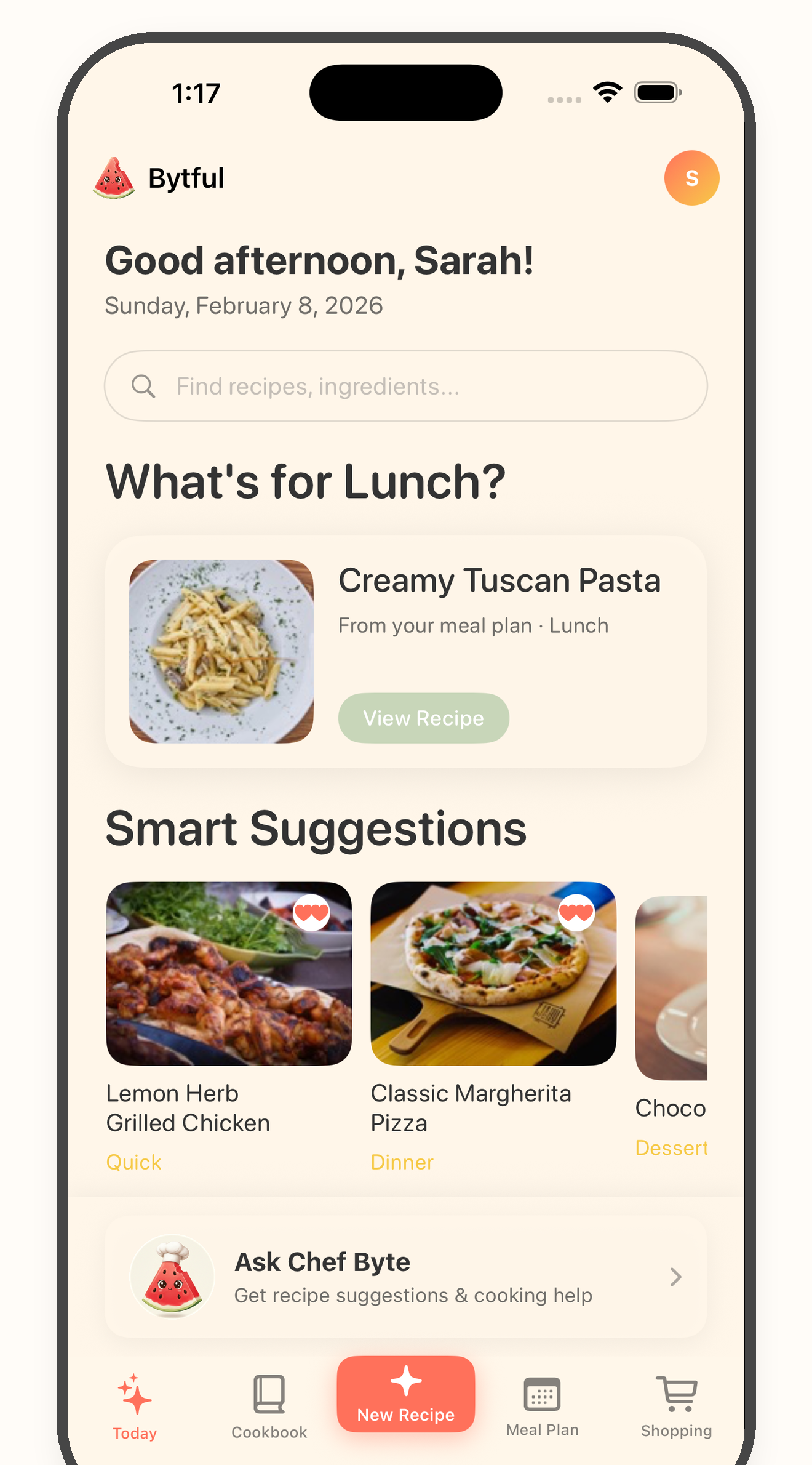 Save your first recipe in under a minute. The cookbook, meal plan, grocery list, and Chef Byte are waiting.
